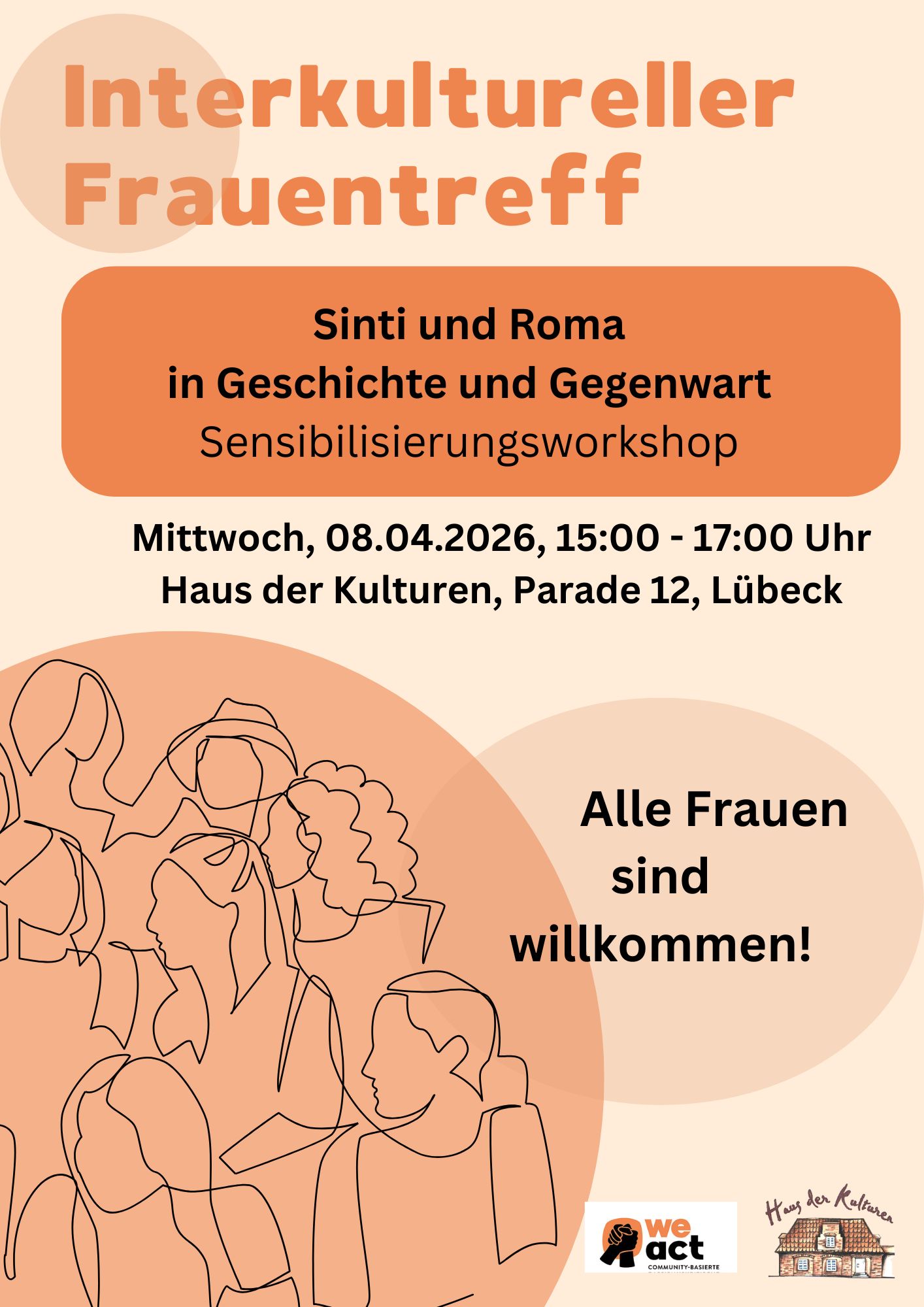 Herzliche Einladung zu unserem Frauentreff anlässlich des Roma-Tages. Wir sprechen über die Geschichte der Sinti und Roma, ihre Lebensrealität in der Gegenwart, sensibilisieren für das Thema Rassismus und überlegen, wie wir solidarisch gegen Diskriminierung handeln können.